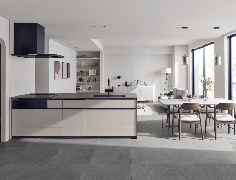 意匠性と耐久性を兼ね備えた新素材ワークトップ「リテックス トップ」をはじめ、シンプルなスクエア型シンク、フロントオープン食洗機が美しく納まるキャビネット、豊富な扉バリエーション、狭小住宅でも設置可能な「幅30cmフロントオープン食洗機」など、美しさと使い勝手の両立を図っている。