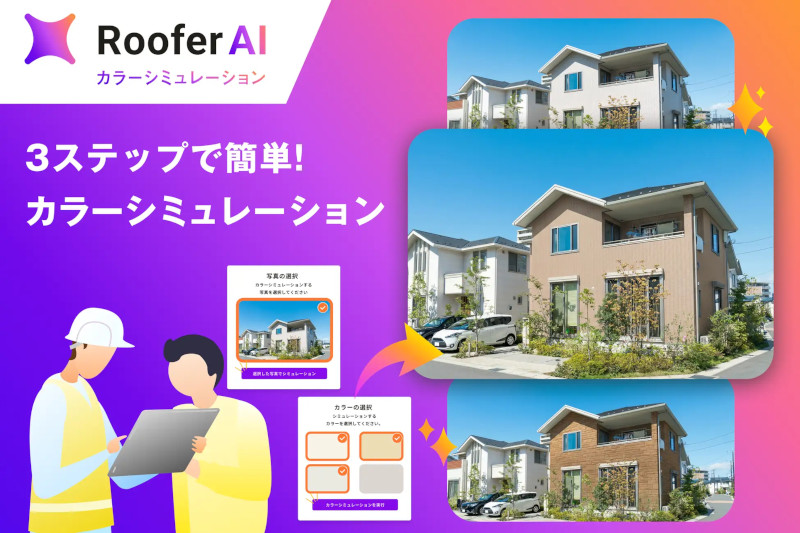 株式会社CLUE(本社:東京都港区、代表取締役:阿部亮介)は、屋根外壁工事・リフォーム事業者向けに、リフォーム後の完成イメージの提案をAIで効率化する「RooferAI カラーシミュレーション」の提供を開始した。