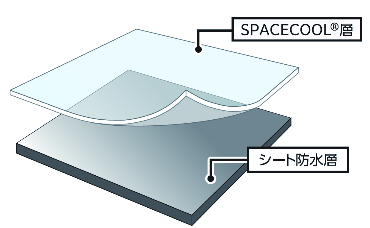 ロンシール工業(株)の防水シート技術と、SPACECOOL(株)の放射冷却技術を融合した、高反射・高放射性能付きルーフィングシート。