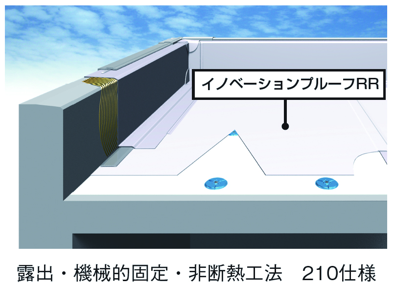 従来の防水シートに比べて屋根表面温度の上昇を抑制し、冷房エネルギーの削減やCO₂排出の低減に寄与する。
