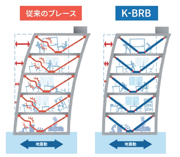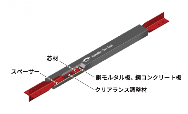 軸力を負担する芯材と、その座屈を防ぐ拘束材で構成された構造により、引張・圧縮の双方向で安定した履歴特性を発揮する。