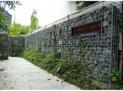 箱状成形したワイヤーメッシュに石・植物・木材などの自然素材を中詰し、構築する修景デザインカゴウォール。側面植栽ができ、修景材として癒し効果、緑化材として都市部のヒートアイランド現象抑制に貢献する。