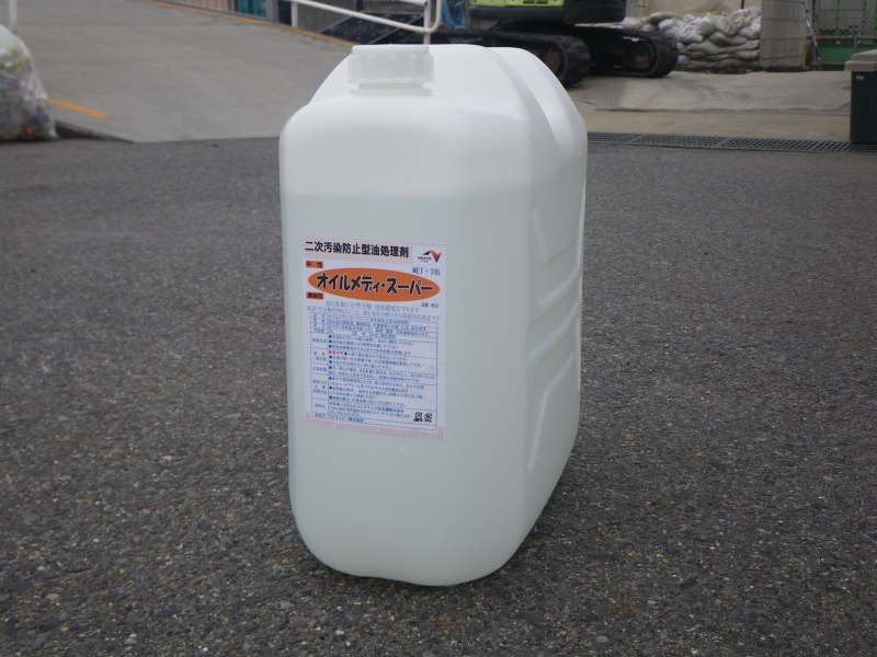 オイルメディ・スーパーは、流出油を超微粒子に分解分散する油中和剤。 オイルメディ・スーパー1本(20リットル)で60リットルの油を処理。