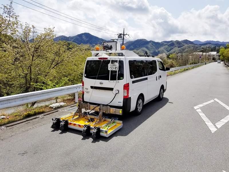 レーザー(路面性状)と電磁波レーダ(道路下空洞)装置を1台の車両に搭載し走行することで、ひび割れなどの道路表面の性状と路面下空洞などの内部の劣化状況を、同時に計測が可能となる複合型探査システム...