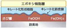 樹脂分中のキレート化可能成分がさび層とキレート化、さび面を安定し、さびの進...