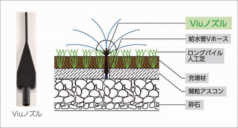 「グラスフィット」は、弾力性のある特殊ゴムを使用した芝生保護材。肥料・目土などの流出を防ぎ、芝の根付けを良くする効果を発揮する。弾力性に優れるため、踏圧に対しても茎が切断されにくい。