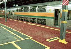 ミヤデッキは、表面全体をケイ砂で特殊コーティングし、その滑り止め効果は強力である。敷設後は街並みに溶け込み違和感がない。環境を壊さずに安全な通行、作業ができる。
