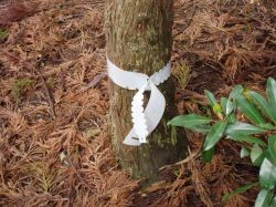 成木を鹿・熊による皮剥ぎ被害から守る資材。軽量で持ち運びが便利。結束具が不...
